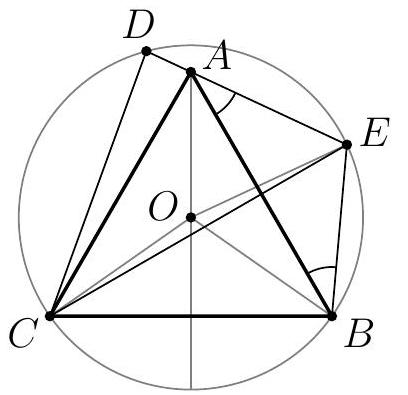 Solution. Note that the sum of angles $A$ and $C$ is $60^{\circ}$. Let $A E=E F=F C=u$.