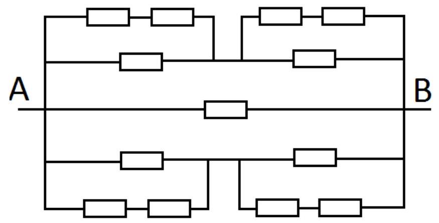 When constructing this structure, a homogeneous wire of constant cross-section was used. It is known that points $B, D, F$ and $H$ are located equally at the midpoints of the corresponding sides of the square ACEG. The resistance of segment $A B$ is $R_{0}=1 \Omega$. Determine the resistance of the entire structure if it is connected to the electrical circuit at points C and $G$.