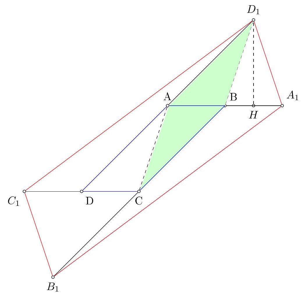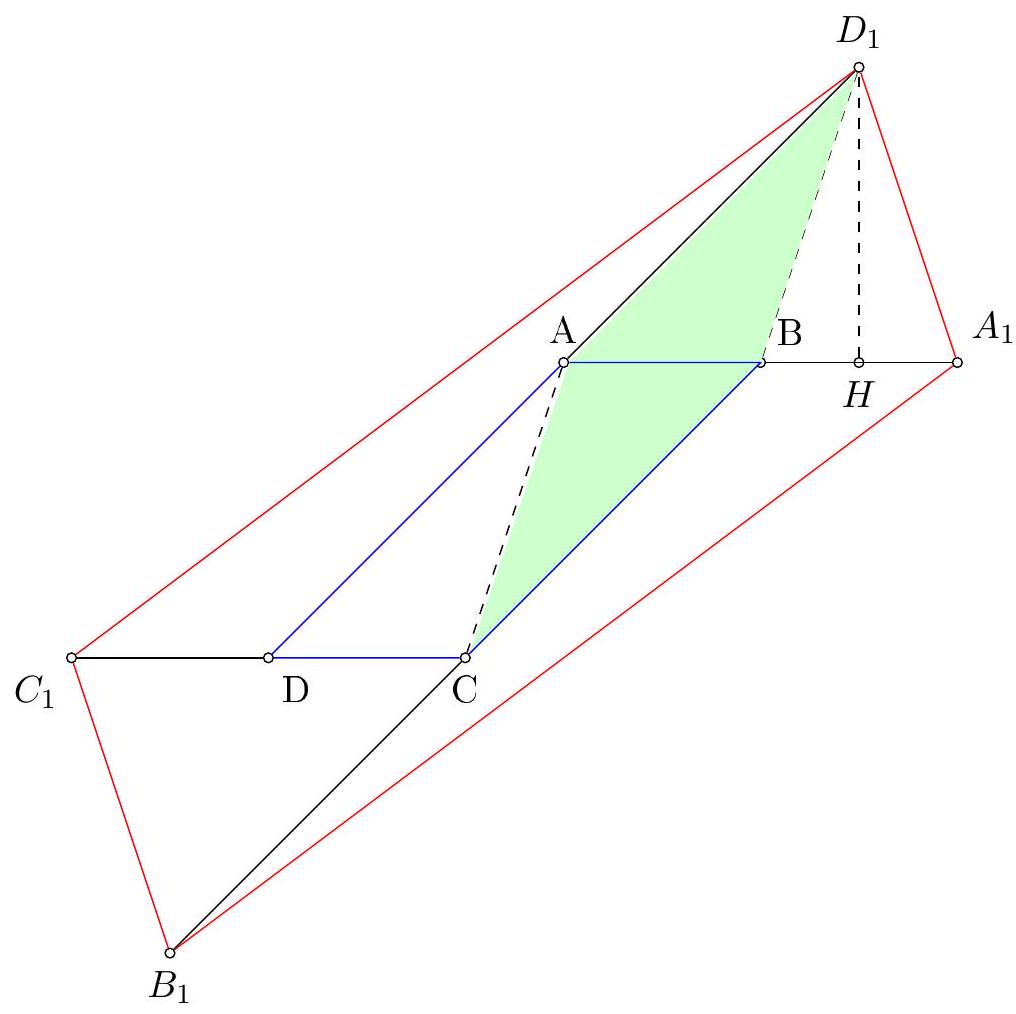 1. Given a parallelogram $A B C D$ and points $A_{1}, B_{1}, C_{1}$, and $D_{1}$ are chosen such that point $A$ is the midpoint of segment $D D_{1}$, point $B$ is the midpoint of $A A_{1}$, point $C$ is the midpoint of $B B_{1}$, and point $D$ is the midpoint of $C C_{1}$. Find the area of $A_{1} B_{1} C_{1} D_{1}$, given that $S(A B C D)=1$.