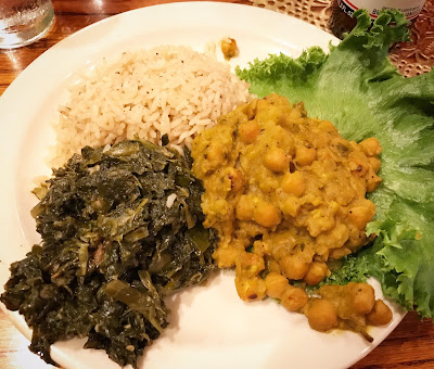 i ordered the channa and potato, along with the spinach choka, to ensure i had a balanced meal with protein and greens.